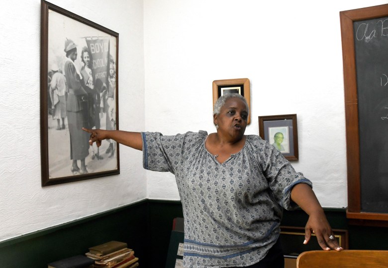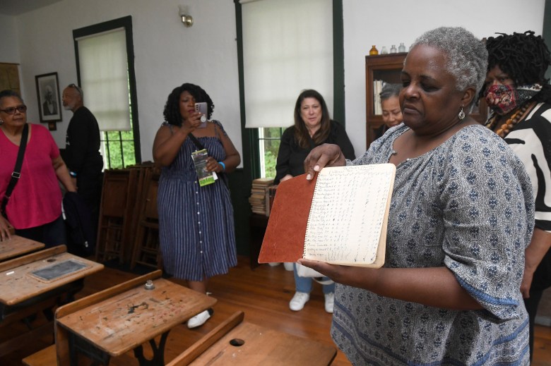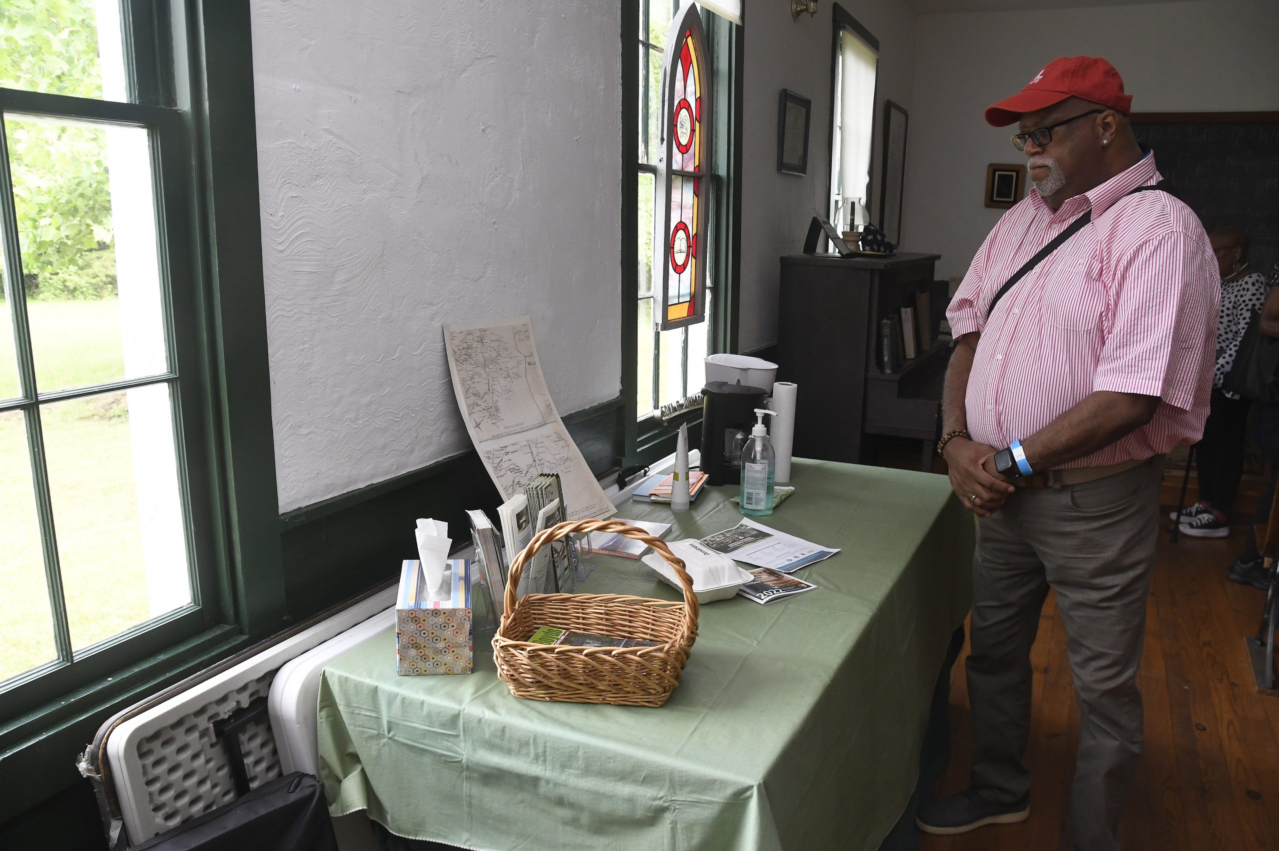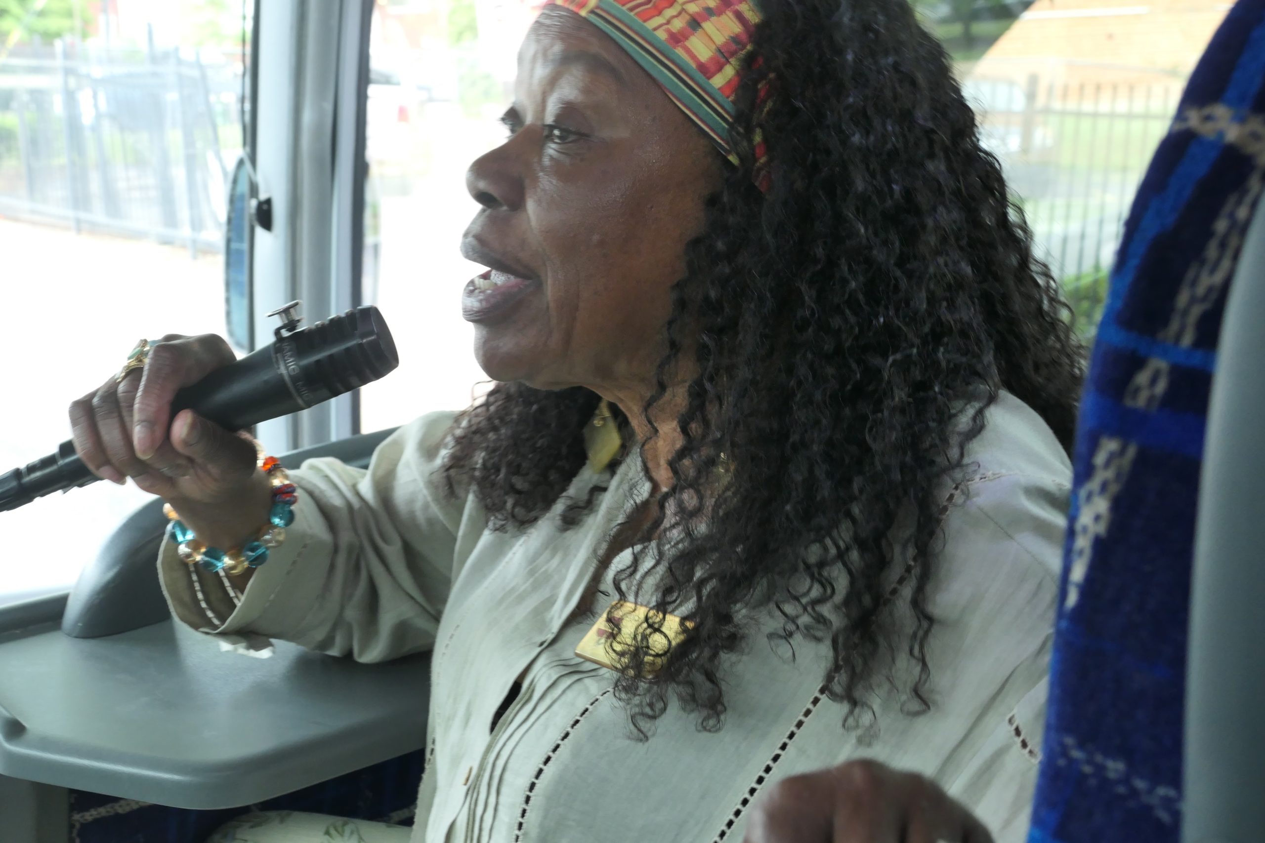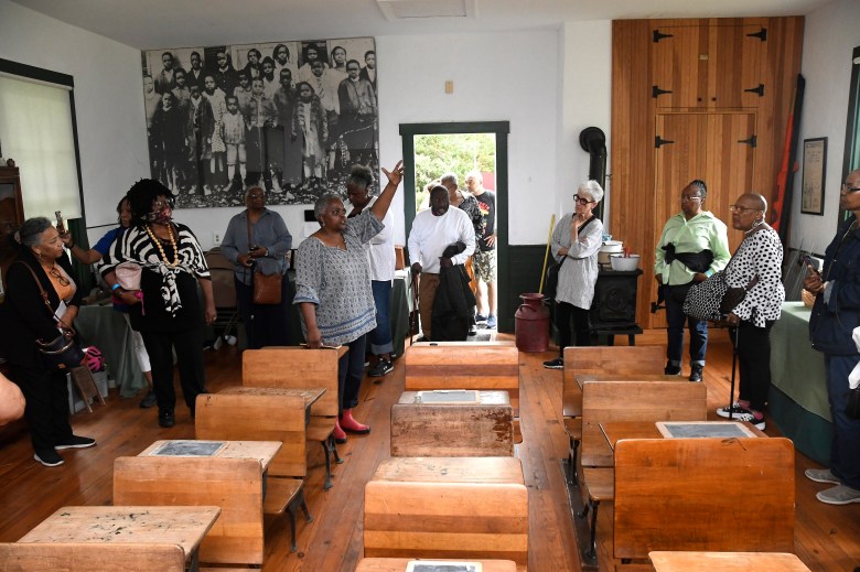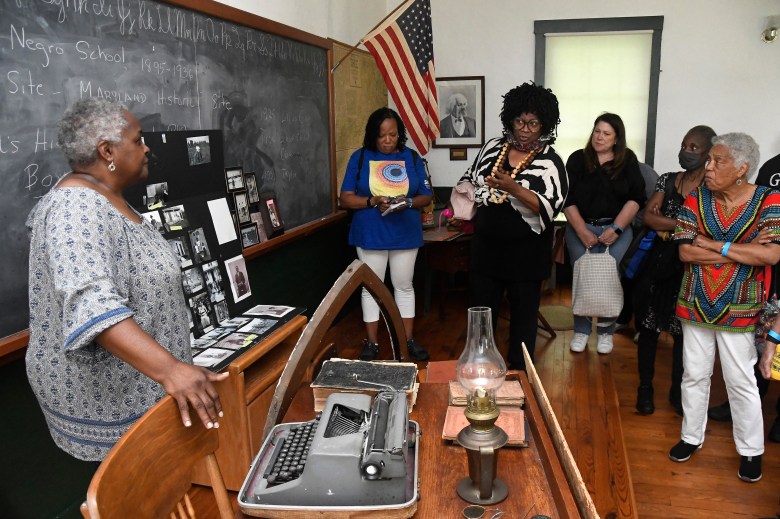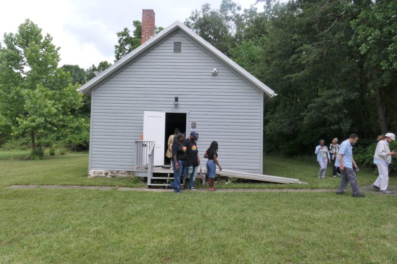 The bus stopped at the Boyds Negro School on White Ground Road in Boyds, Maryland where tour guide Nanette Hunter told the history of the one-room 22 x 30 foot wooden building.
