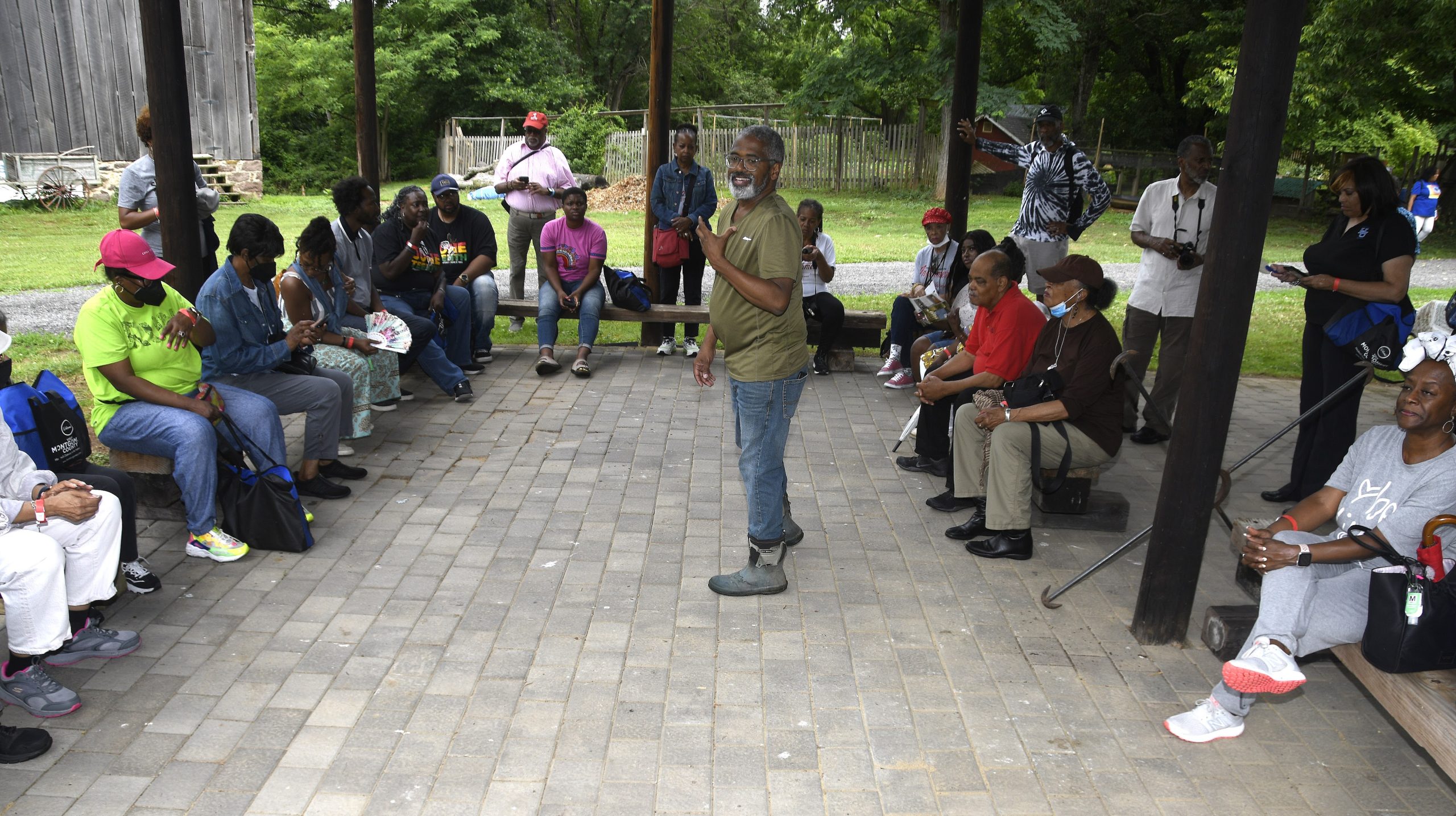 One of the tour stops was the Button Farm Living History Center in Rockville. Anthony Cohen, founder and President of the Menare Foundation, operates Button Farm. He told how he designed the Underground Railroad Immersion Experiences at the farm in 1997 to prepare Oprah Winfrey for her role in Beloved.