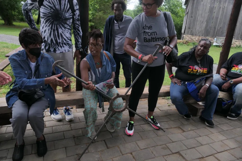 Cohen, who was adopted by a Jewish family, hence the name, took participants to an area containing herbs and vegetables grown during the times of slavery. Other sightings were the no kill hog pen, a barn, a farm house, and a wagon. Participants passed around a recreated tool used to punish slaves as Cohen explained its use.